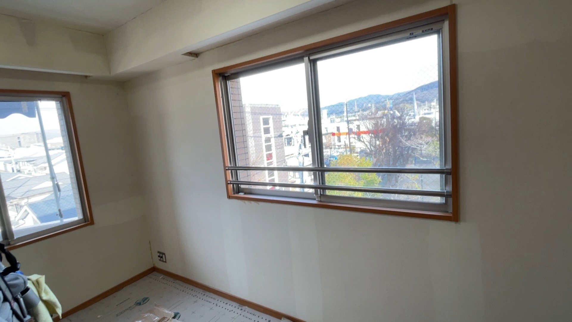 壁の結露防止にガイダンエルシートを施工してから壁紙を貼り、窓には遮熱のガラスフィルムを施工