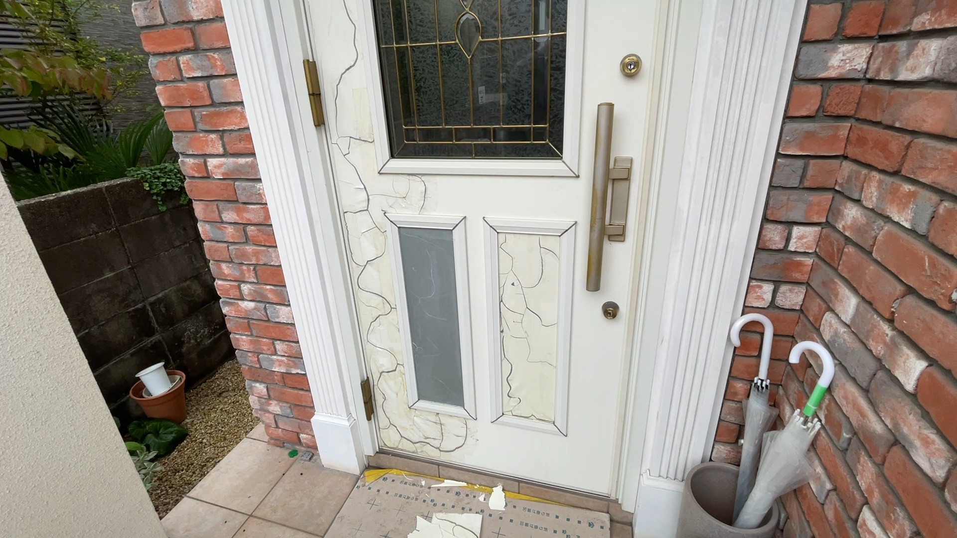 ひび割れのようになっている玄関ドアを張り替えてほしい