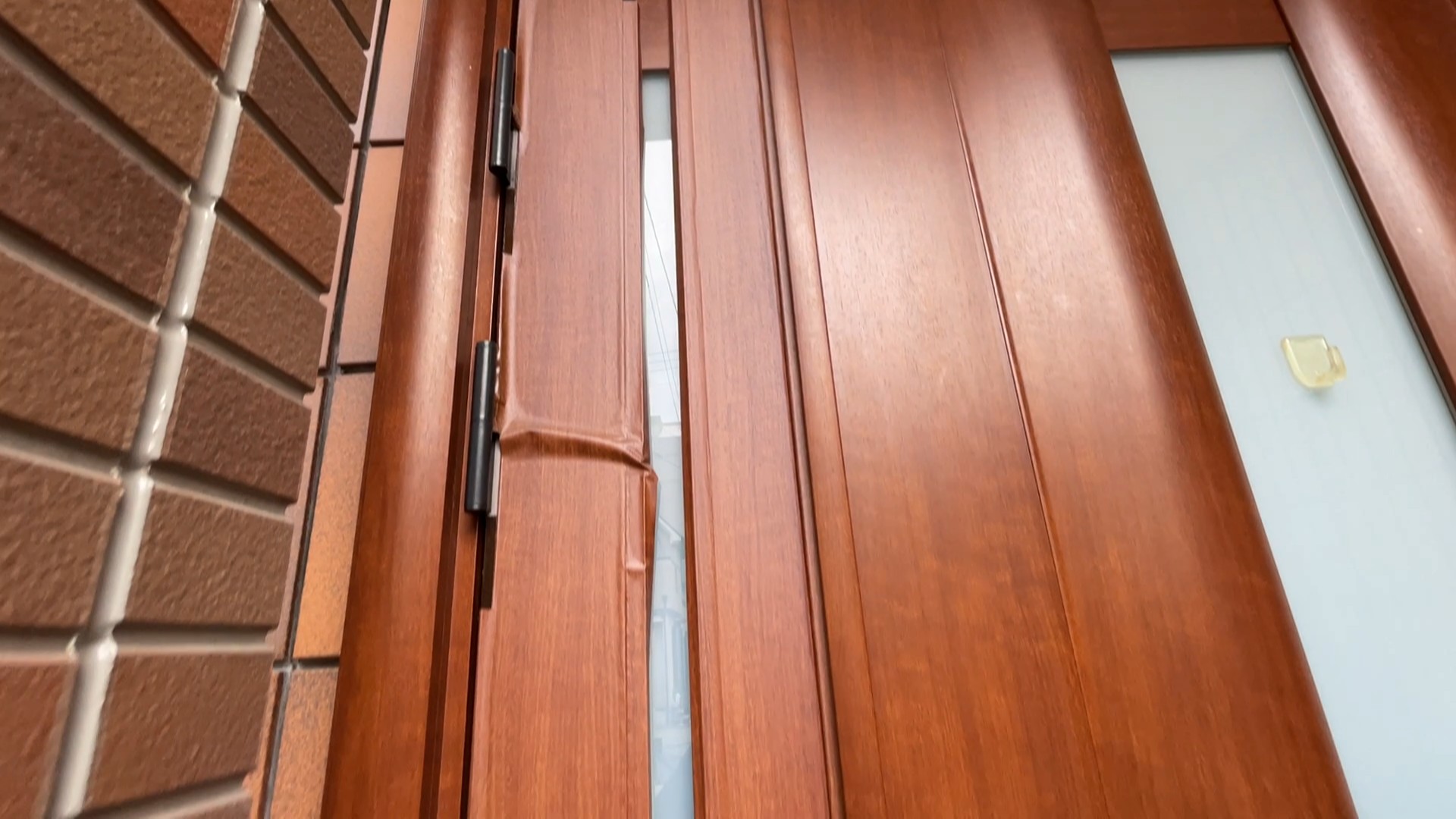 玄関ドアの表面がたるんで剥がれてきているので貼り直してほしい