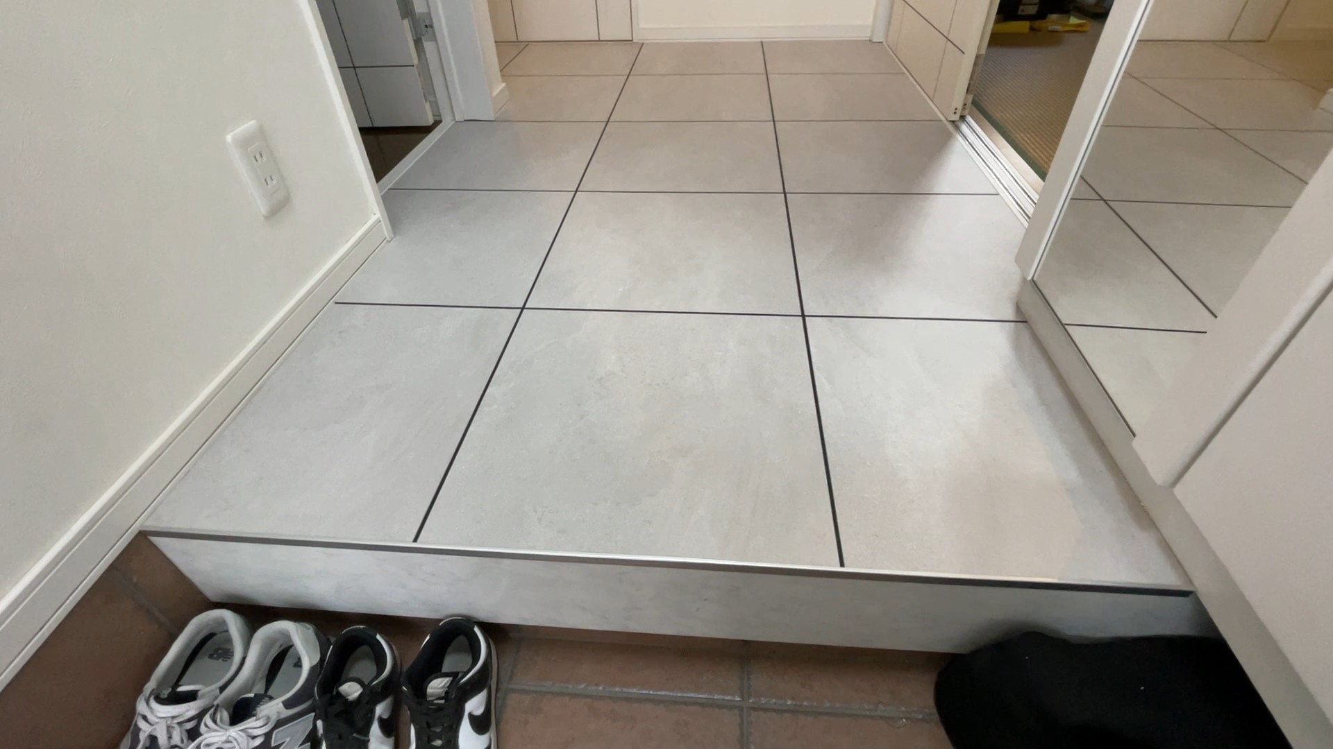 玄関廊下とトイレの床にサンゲツフロアタイルを目地棒ありで施工